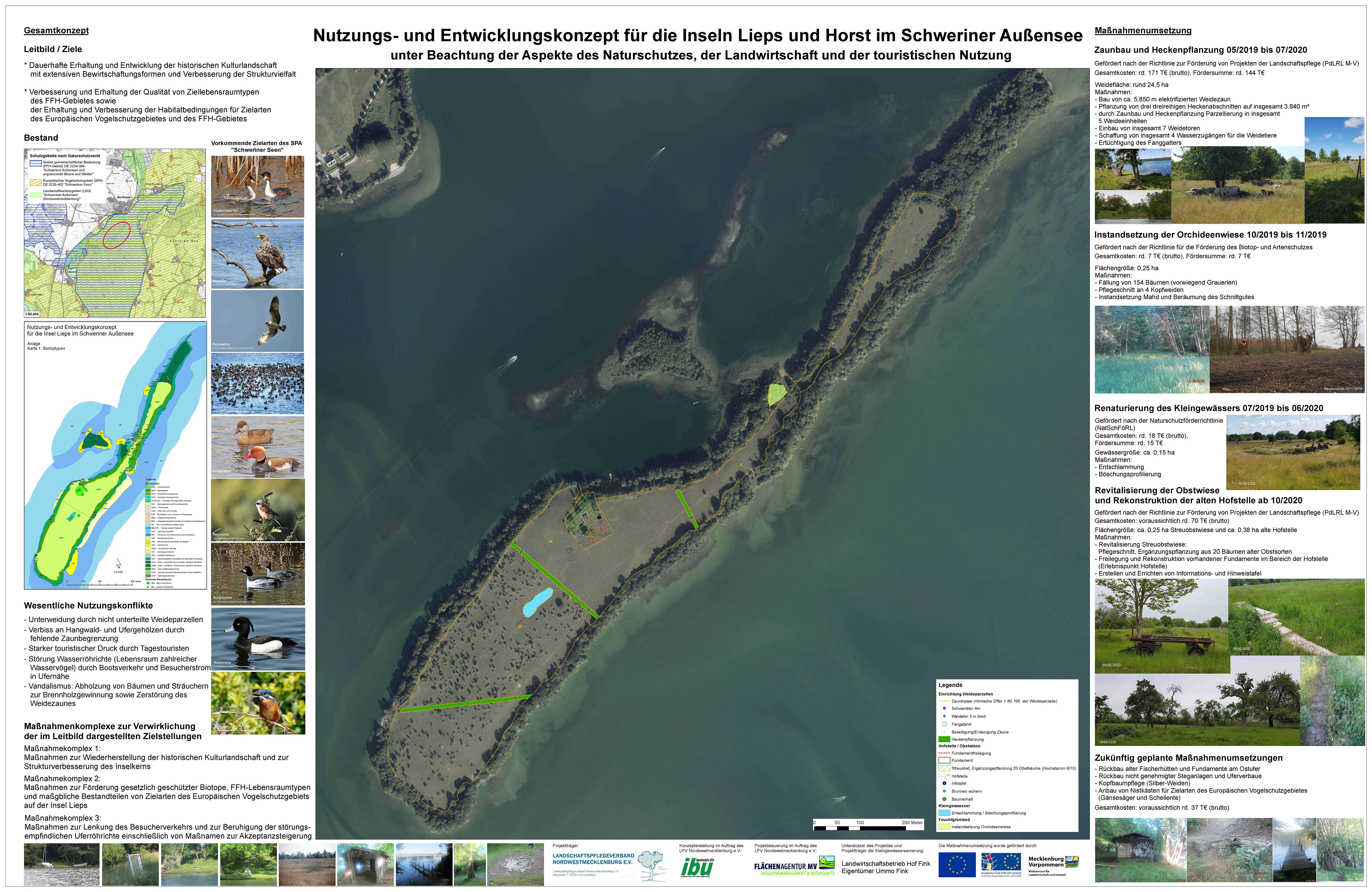 Umsetzung des Nutzungskonzeptes für die Inseln Lieps und Horst im Schweriner Außensee unter Beachtung der Aspekte des Naturschutzes, der Landwirtschaft und der touristischen Nutzung.